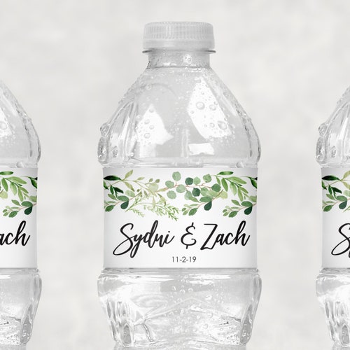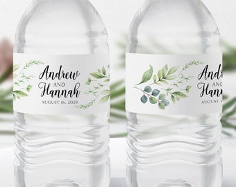 Wedding Water Bottle Labels Greenery Leaf Wedding, Bridal Shower Water Bottle Labels, Wedding Shower Waterproof Bottle Wraps - Set of 10