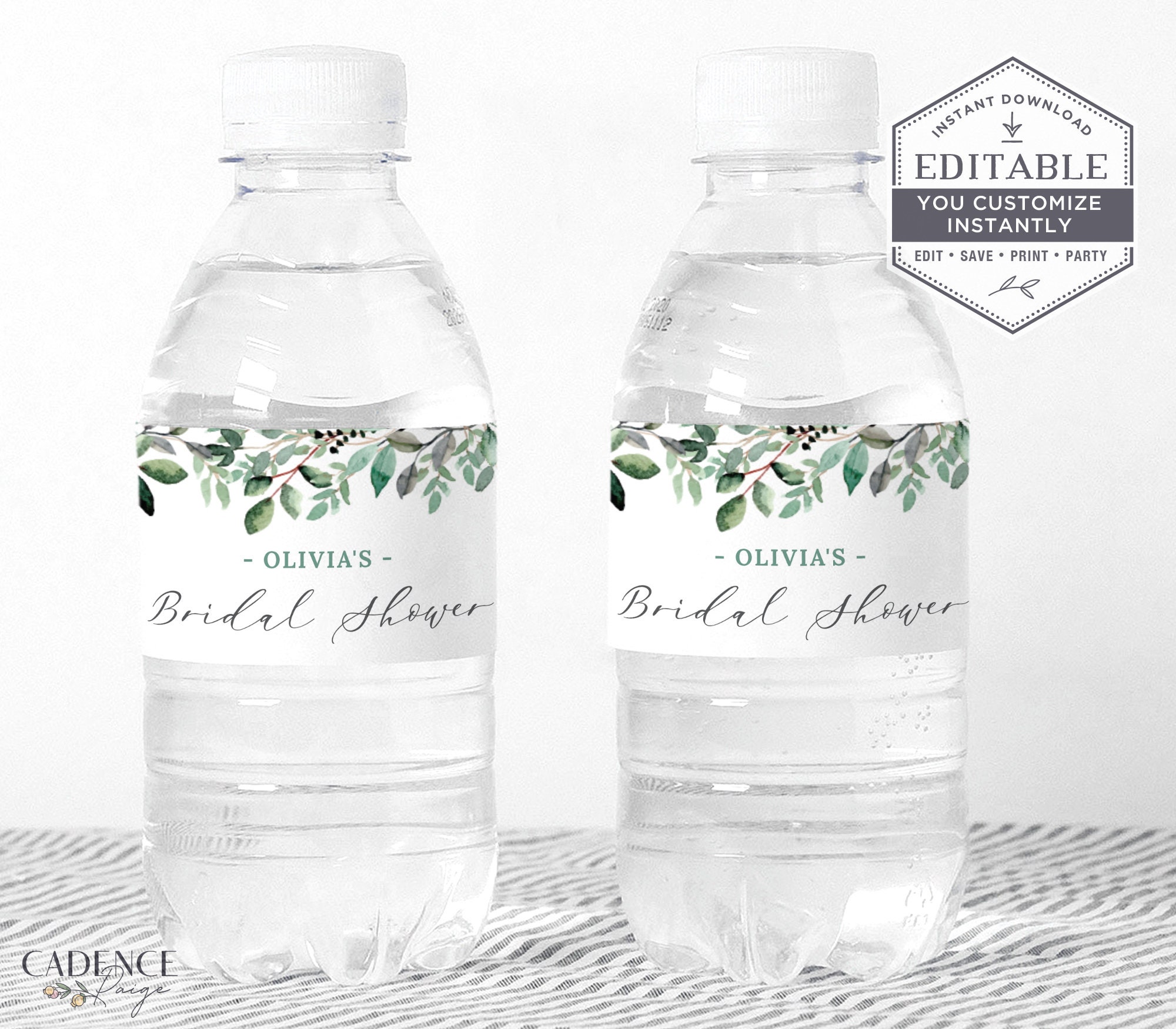 EDITABLE Water Bottle Label Template, Eucalyptus Bridal Shower, Water Bottle Label Printable, Instant Download, Edit yourself, P33