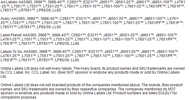 Templates for Avery L7651 | Avery Mini Address Labels - L7651-10. Mini Address Labels - L7651-25. Mini Address Labels, L7651-100 - L7651-100. Mini Address Labels, L7651-250 - L7651-250. Neon Yellow Labels - L7651Y-25.